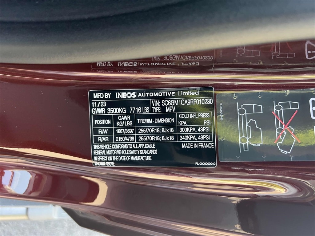 Queens Red Metallic 2024 INEOS Grenadier 4WD 8-Speed Automatic 3.0L I6 ABS brakes, Electronic Stability Control, Heated door mirrors, Illuminated entry, Low tire pressure warning, Navigation System, Remote keyless entry, Traction control.